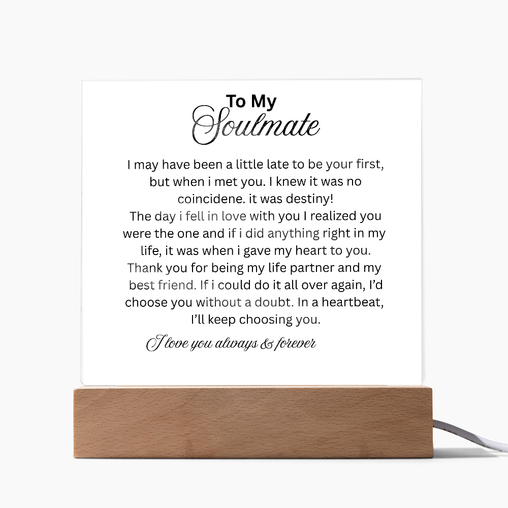 Your plaque will be crafted from premium acrylic with a professionally printed design for a polished look. It comes with a stylish wooden LED base, and you can choose between a USB plug-in option OR a cordless battery-operated option (requires 2 AAA batteries, not included). Both LED bases feature 7 vibrant colors, allowing the user to customize the lighting with various color changes and dynamic cycles.