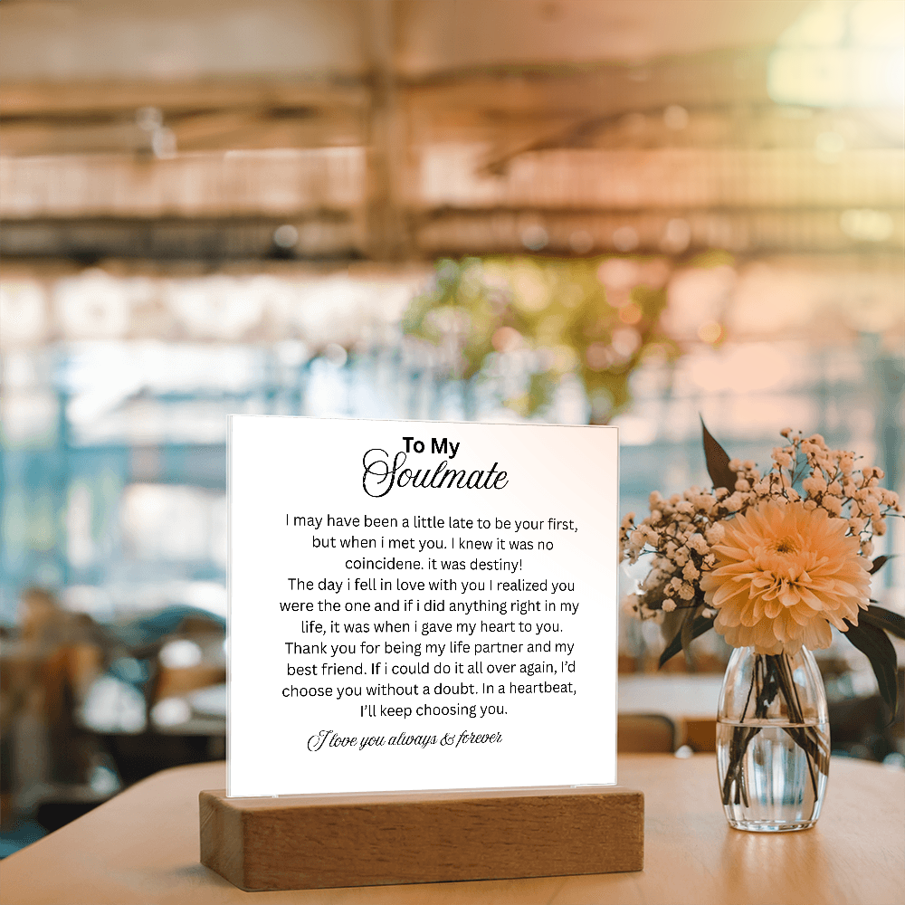 Create a memorable welcome to any room with our Printed Square Acrylic Plaque. This beautiful sign is handcrafted using premium acrylic and a vibrantly printed design. Display your beautiful plaque in your own home or give it as a gift to make a statement. This would make an ideal gift for your beloved partner, family members, or dear friends on special occasions like anniversaries, birthdays, or any event where you want to express your love and appreciation in an unforgettable way.